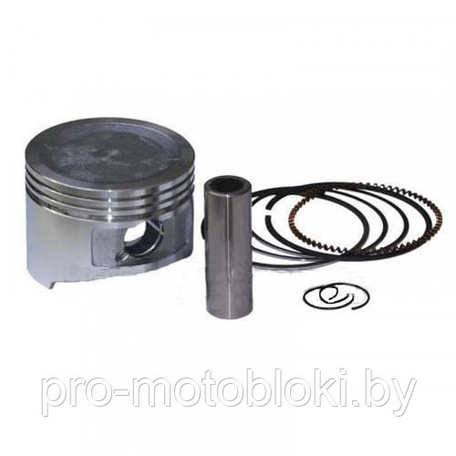 В комплект входит поршень,кольца поршневые, палец и два стопорных кольца.